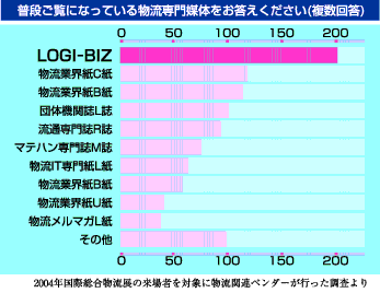 『ロジビズ』の発行部数は1万部です。少ないとお感じになる方もいらっしゃるかも知れません。しかし新聞・雑誌を含め物流関連媒体の実売部数としては現在N0.1だと自負しています。事実、第三者が実施した右の物流メディア調査でも『ロジビズ』はダントツの支持を得ています。